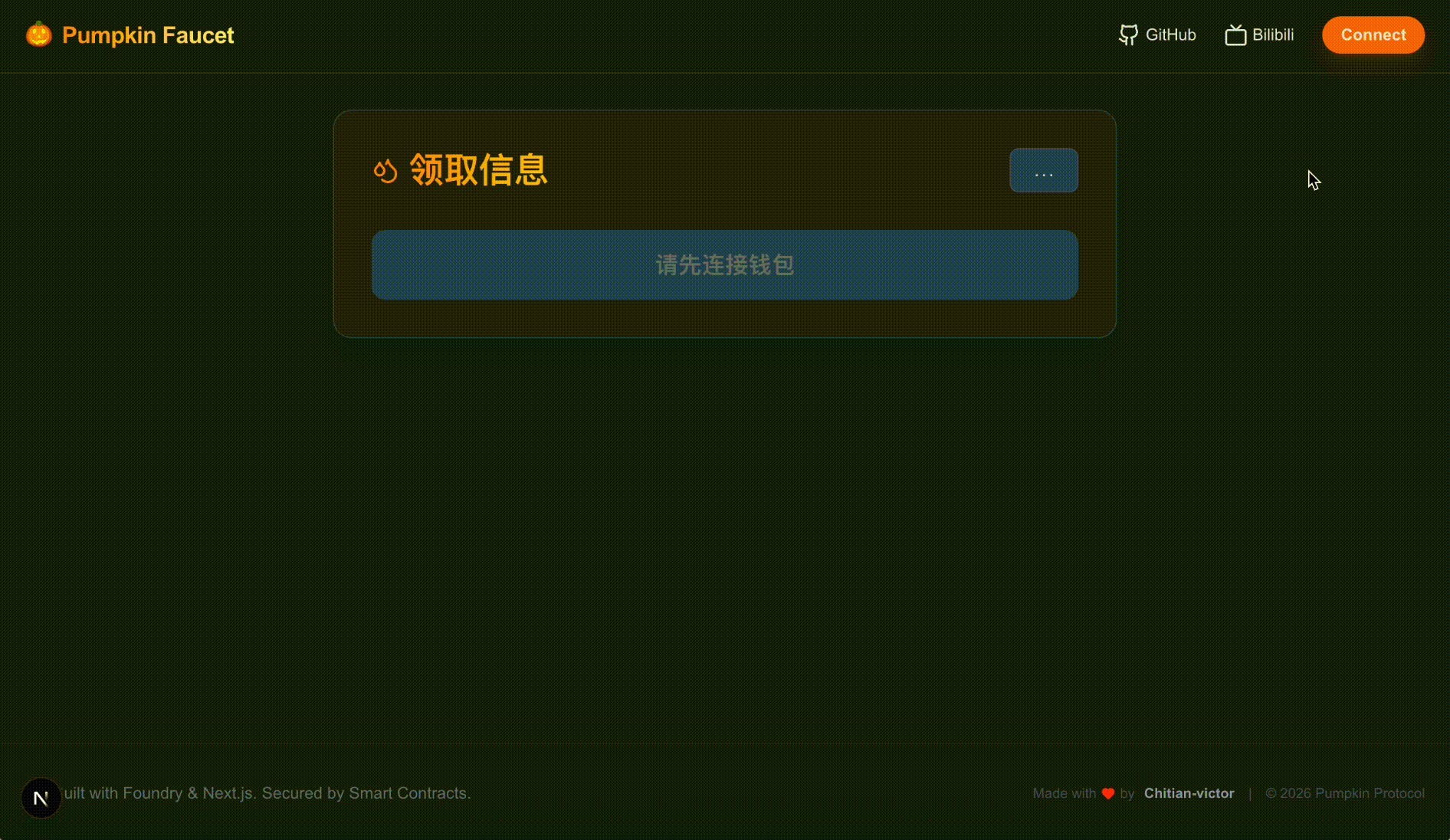 | const pumpkinFaucetAddress = "水龙头合约地址";