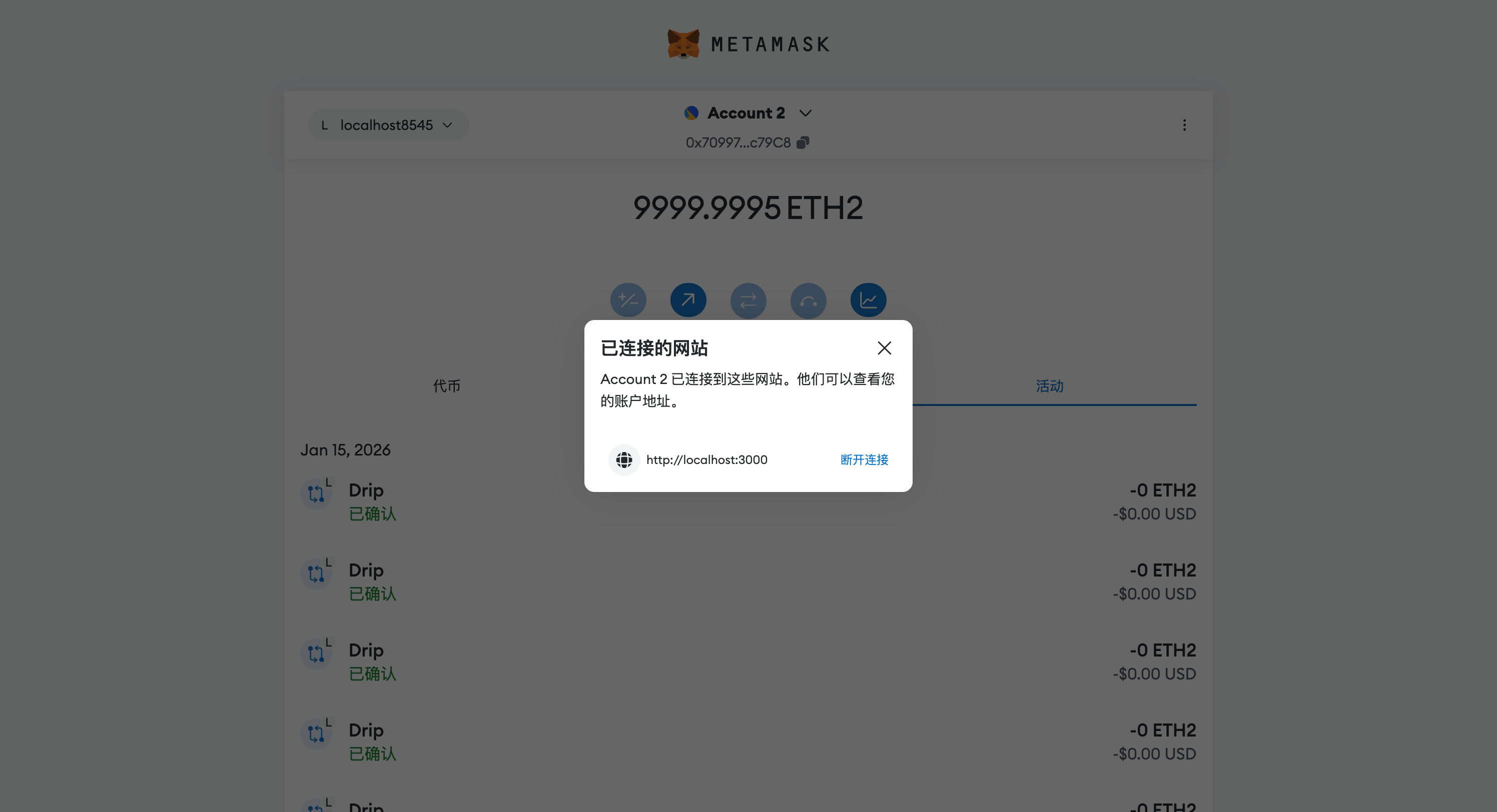 另外补充:当 Anvil 重启时,链的状态重置了(Nonce 归零),但 MetaMask 可能记住的还是之前的 Nonce(比如 10)。当你再次发起交易,MetaMask 发送 Nonce 11,但 Anvil 期望 Nonce 0,导致交易卡死或报错